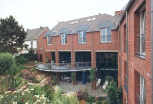 Von der Gestaltung des Gebäudes sind Bauherr und Architekt nach wie vor überzeugt. „Entscheiden sich z.B. Krefelder Unternehmer für den Ort Kipshoven, erwarten sie eine optimale Arbeitsatmosphäre in ländlichem Ambiente. Genau das bietet unser Haus. Der Klinker „Altrauh“ im NF-Format, mit hell abgesetzter Fuge und vor allem dem lebendigen Farbenspiel des Kohlebrands, ist ortstypisch und doch individuell“, so Kurt Esser, und Reuschenbach ergänzt: „Und Alterungsspuren sind nirgends zu erkennen, weder beim Seminarhotel, noch bei den älteren Klinkeranbauten“. Inzwischen ist das Stammhaus noch einmal vergrößert worden, der gleiche Klinker schmückt die Eingangsfront. Zum dritten Mal wählten die Bauherren für die Fassadengestaltung den attraktiven Terca-Klinker von Wienerberger aus dem heimischen Ziegelwerk in Wegberg. Gegenüber dem Seminarhotel gibt es noch ein Baugrundstück. Der nimmermüde Hotelier kann sich „…etwas in Richtung Fitness, Wellness vorstellen“. Welchen Baustoff er dafür favorisiert, kann man sich denken.